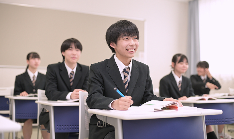 生徒の理解度に応じて、1年次は基礎力回復・応用力養成、2年次は実力定着、3年次は進路希望に対応した授業を選択し、学習します。
