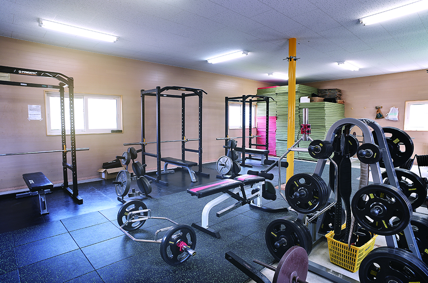木をふんだんに使用した武道館の他、基礎トレーニング用のマシンを設置したトレーニングルームも完備しています。