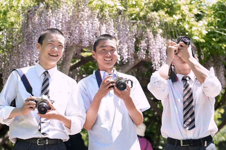 クラスの枠を取り払って自由に選択する総合的な学習には、英語や韓国語といった語学、書道や美術、写真といった芸術、