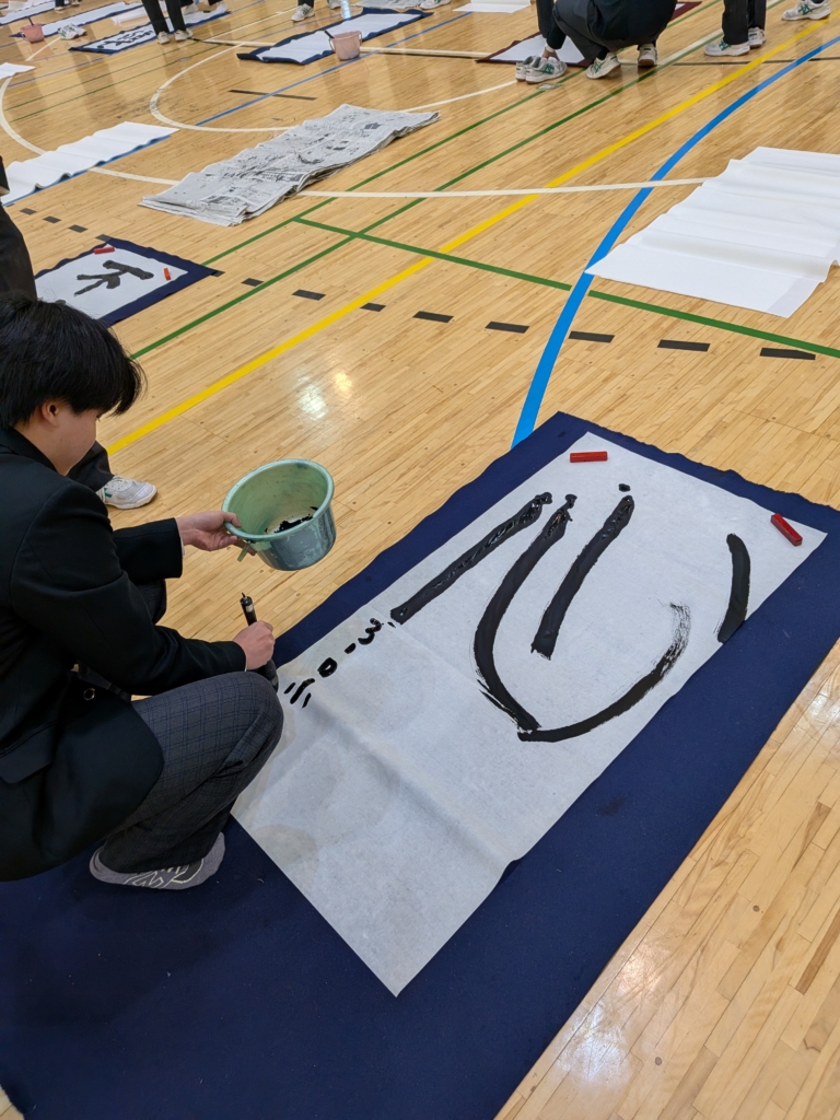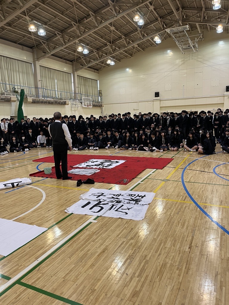 生徒たちは冬休み中に考えた今年の抱負や目標の言葉を題材に、