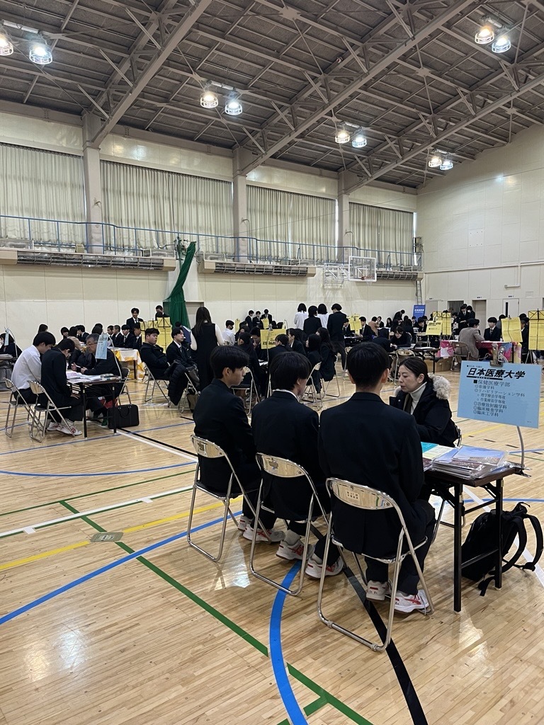 進路ガイダンスとは、生徒の興味関心に沿った学校様や企業様から説明を聞いたり質問ができる行事です。今回も多数の上級学校や企業さまにご参加いただきました。